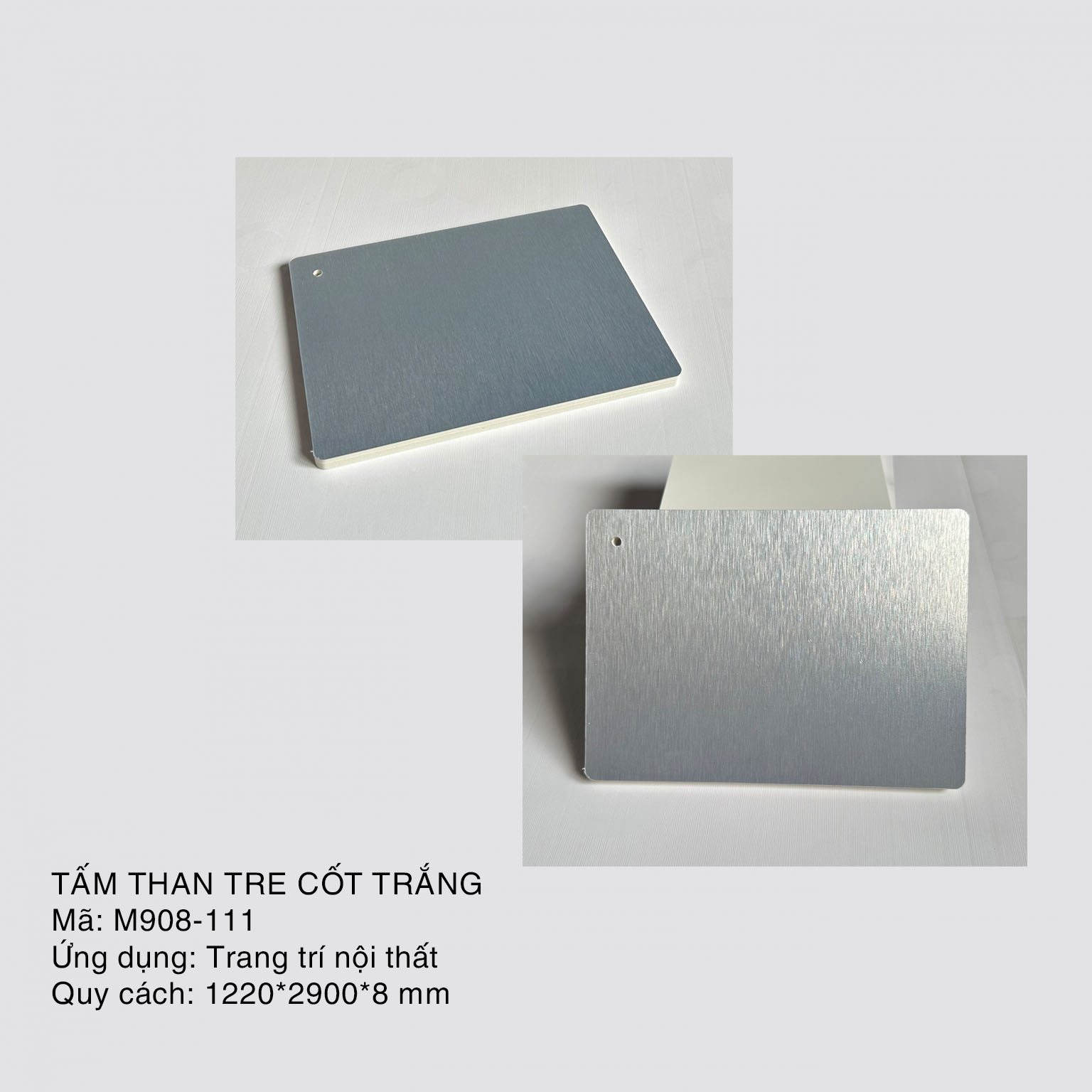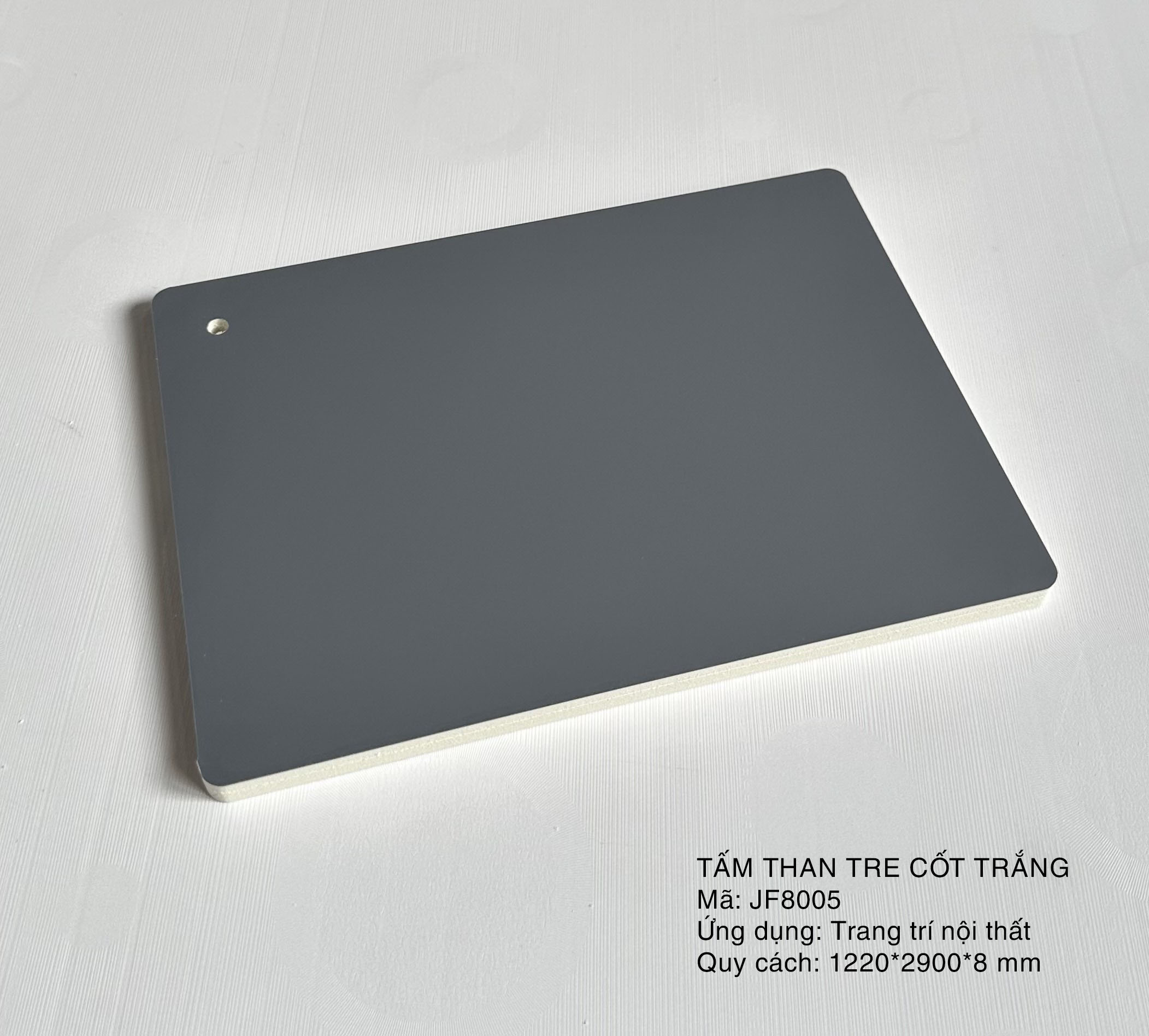Tấm than tre (cốt trắng/đen): chống nước 100%, không mối mọt, chịu lực tốt; thay thế MDF cho tủ bếp, tủ áo, vách, kệ – thi công nhanh.